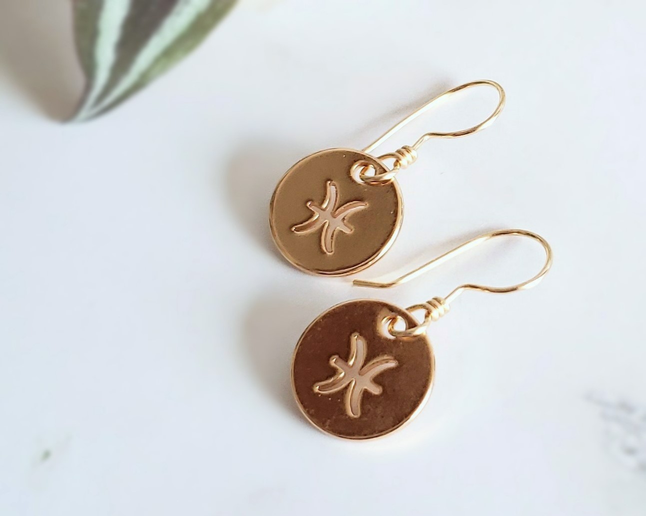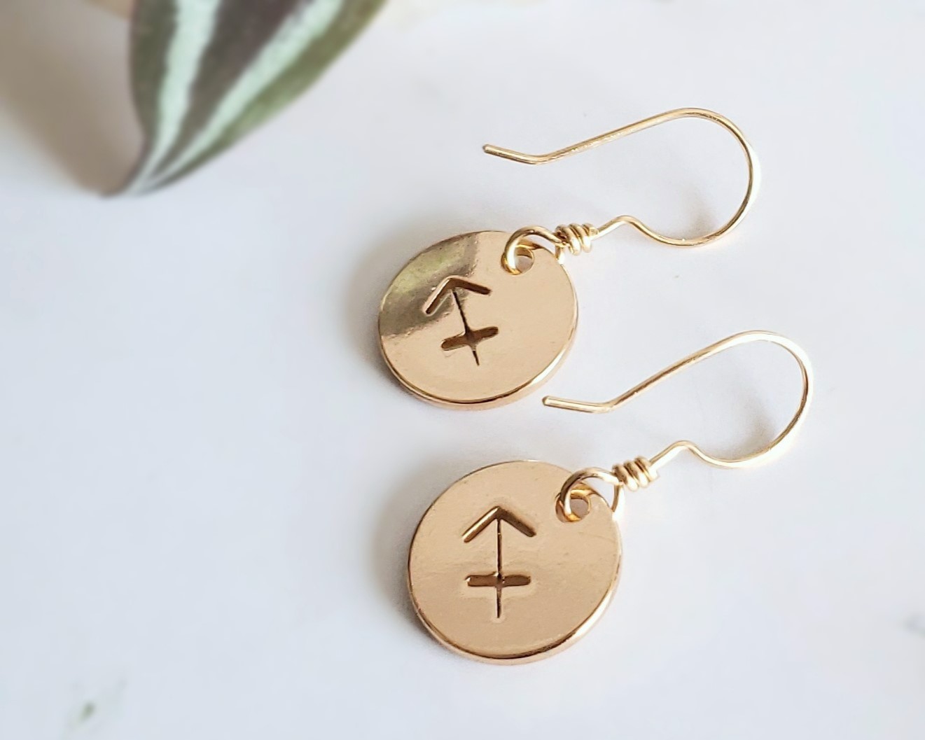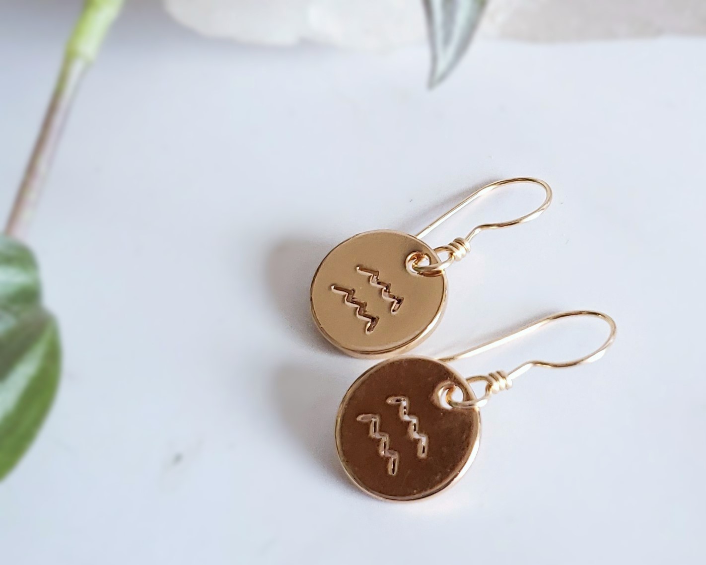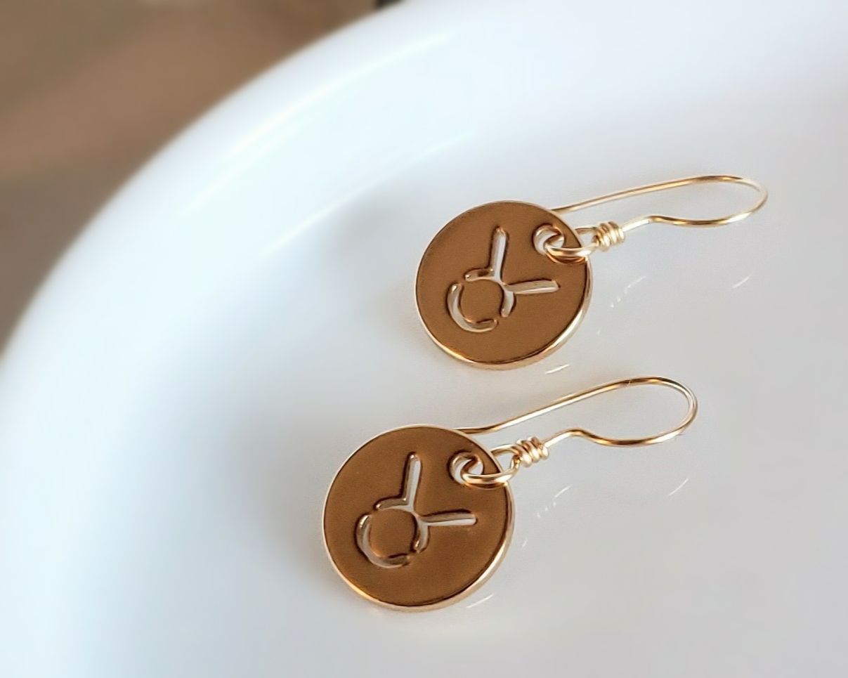 Indulge in luxury with unparalleled style through these captivating Zodiac Earrings, ensuring not only a touch of celestial charm but also catering to those with skin sensitivities to traditional jewelry. The coins, adorned with your unique zodiac sign, gleam like shimmering mirrors, reflecting your cosmic identity with every move. The earwires, crafted from 14K Yellow Gold, dangle these coins on your ears in an effortless way, adding a touch of glamor and sophistication to any outfit.