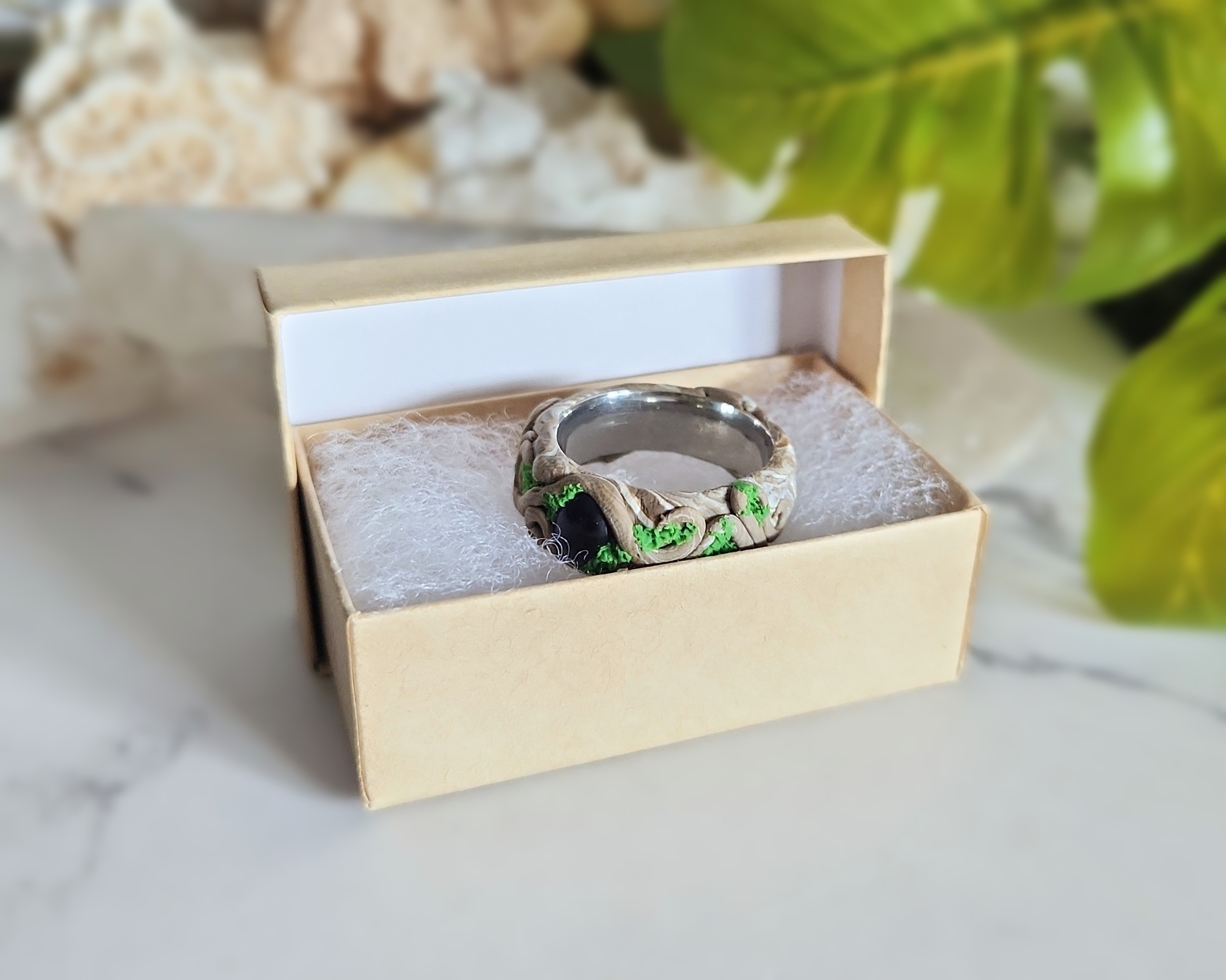Whether you’re gifting it for a February birthday or keeping it for yourself as a grounding reminder of nature’s beauty, this ring is full of story, spirit, and just a hint of magic that glows quietly in the dark.