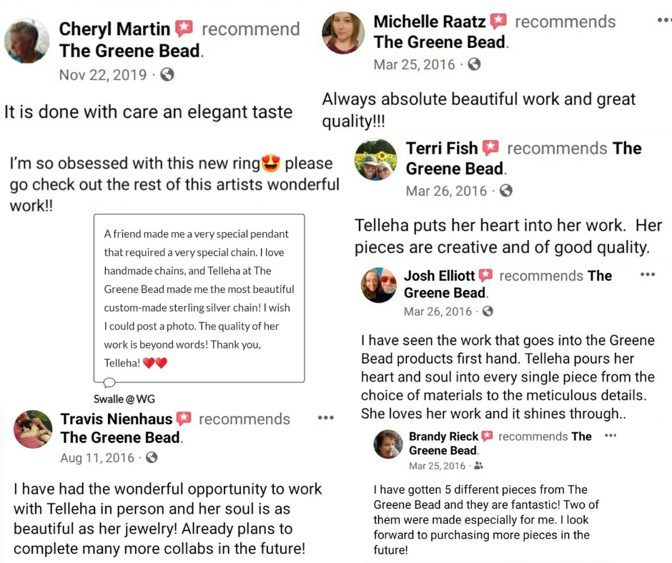 Hello! My name is Leha, and I am the artist for The Greene Bead. I specialize in Wire Wrapped and Polymer Clay jewelry, and have been a gemstone lover since I was a small child- you could always find me coming home laden with rocks in my pockets! I try to use as much naturally derived product as I can, including all genuine gemstones, mined locally here in Wisconsin, Illinois, across the US and around the world. Some of my pieces even include upcycled items such as vintage beads, crystals and buttons! My journey began back in 2010 as a way to create new jewelry for myself, a broke college student, by taking apart jewelry I already owned and piecing it back together to create new items. One of my roommates at the time saw what I was doing and asked me to create a few pieces for him, and that's how this all started!