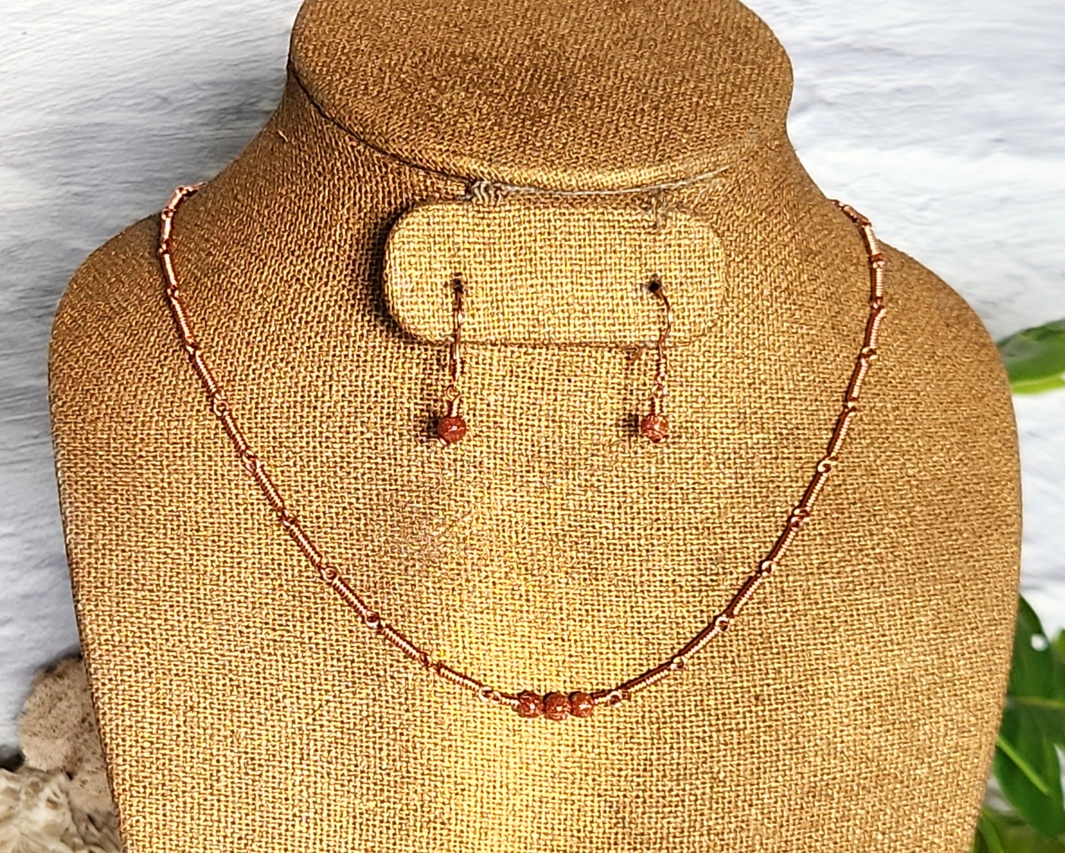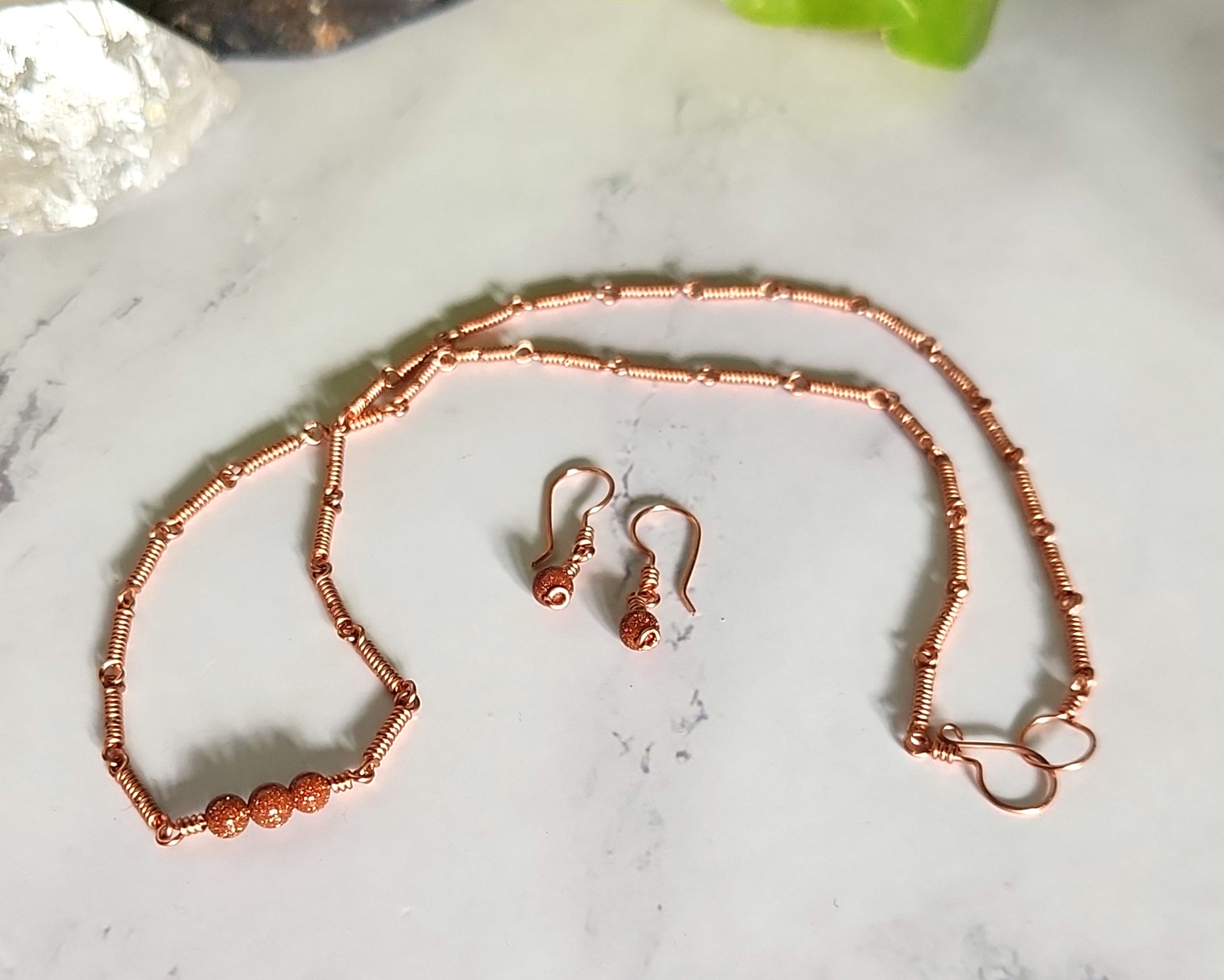 This jewelry set was made with Copper wires and Goldstone gemstone beads.