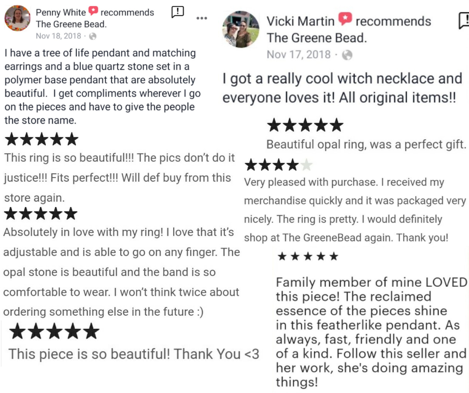 Hello! My name is Leha, and I am the artist for The Greene Bead. I specialize in Wire Wrapped and Polymer Clay jewelry, and have been a gemstone lover since I was a small child- you could always find me coming home laden with rocks in my pockets! I try to use as much naturally derived product as I can, including all genuine gemstones, mined locally here in Wisconsin, Illinois, across the US and around the world. Some of my pieces even include upcycled items such as vintage beads, crystals and buttons! My journey began back in 2010 as a way to create new jewelry for myself, a broke college student, by taking apart jewelry I already owned and piecing it back together to create new items. One of my roommates at the time saw what I was doing and asked me to create a few pieces for him, and that's how this all started!