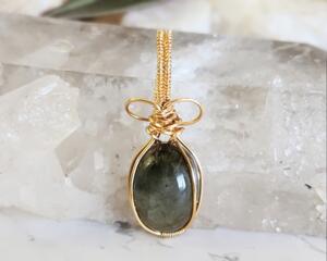 Labradorite and Druzy Quartz Polymer Clay Full Moon Pendant