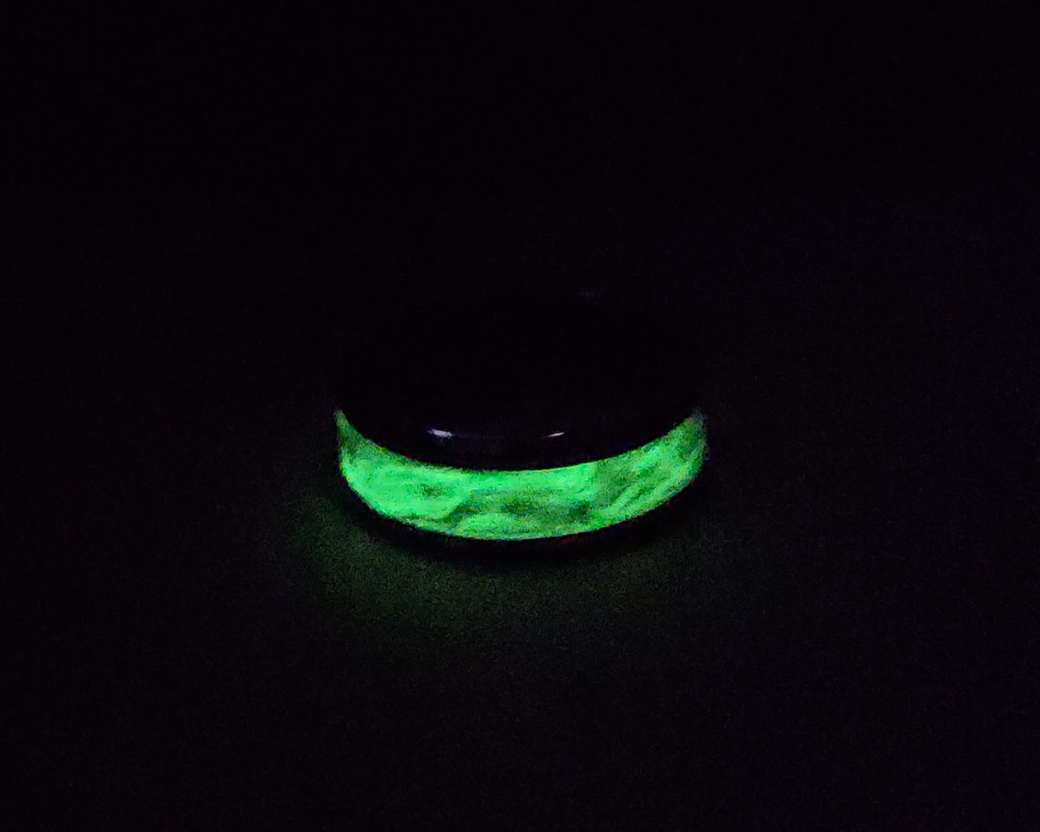 This ring was made with a Polymer Clay glow in the dark blend on a Stainless Steel ring blank.