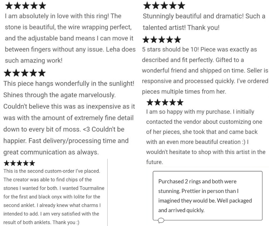 Patina and Tarnish: Sterling Silver and Copper will naturally patina/tarnish over time and with extended wear. Bathing with your jewelry will cause it to patina/tarnish faster, and constant wear will also increase how quickly your items patina/tarnish. Depending on the stones used in each piece, you may use a regular jewelry cleaning solution (meant specifically for Sterling Silver, or just a general cleaner for Copper), but it is advised that a regular cleaning cloth or a soft-bristled toothbrush and a little bit of mild soap be used over the cleaning solutions to protect the stones in your piece.