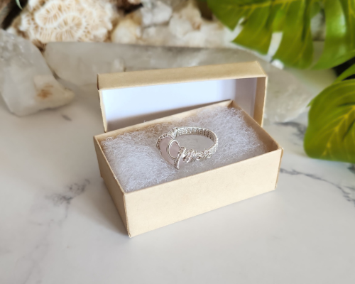 Whether gifted to someone going through a time of growth, a Reiki or metaphysical practitioner seeking harmony, or a friend who simply needs a heartfelt reminder of love’s gentle power, this ring carries warmth, peace, and timeless beauty in every curve.