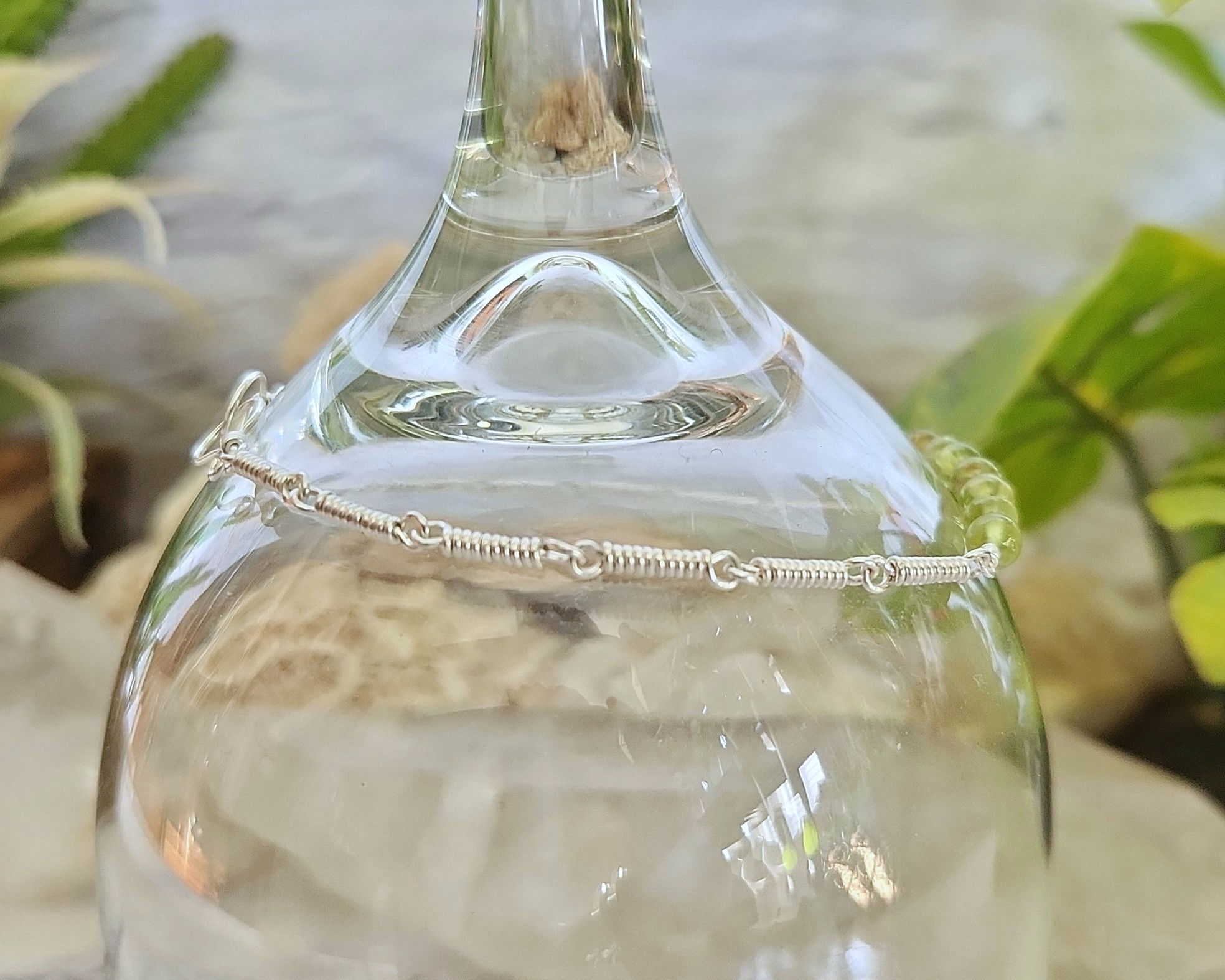 This bracelet is made with Peridot gemstones and Sterling Silver wires.