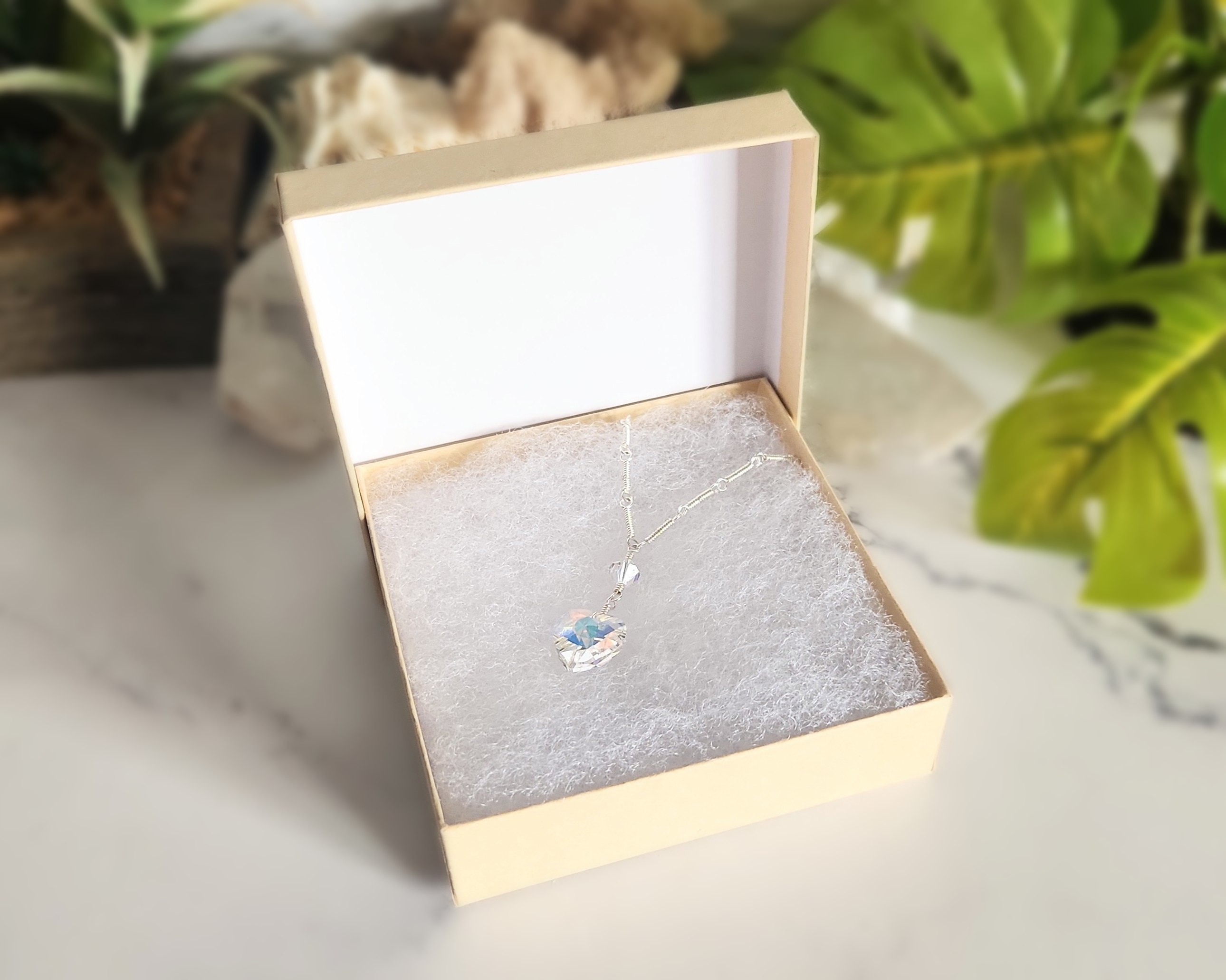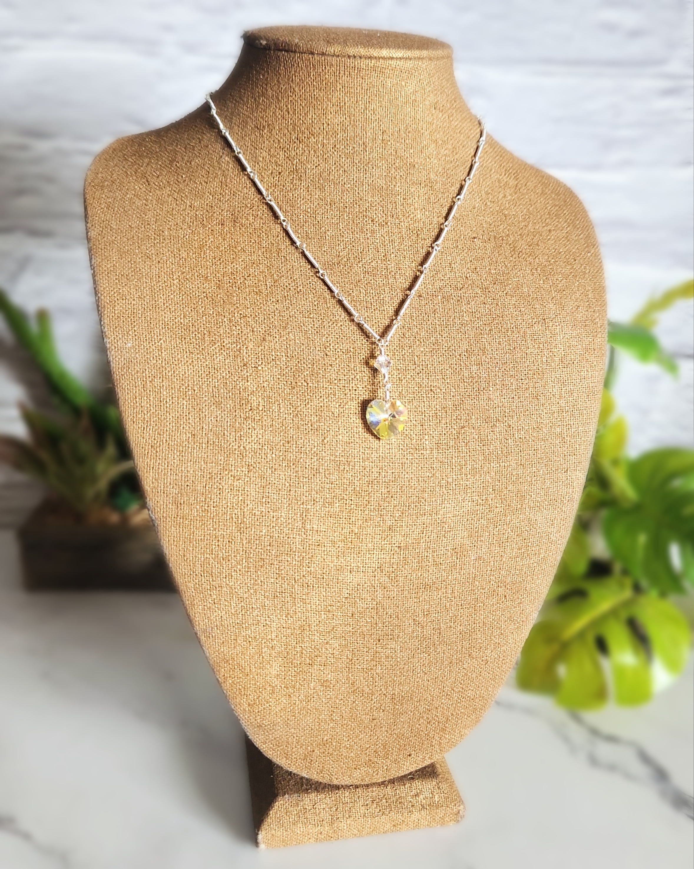The heart detail makes this a truly thoughtful gift for Valentine’s Day, anniversaries, birthdays, or simply as a “just because” surprise for someone you love. It’s also a sweet way to remind yourself of the love you carry for friends, family, and your own journey. With its soft, rainbow-like shimmer from the crystals, this necklace brings a touch of joy and warmth to any outfit, whether dressed up or worn casually.